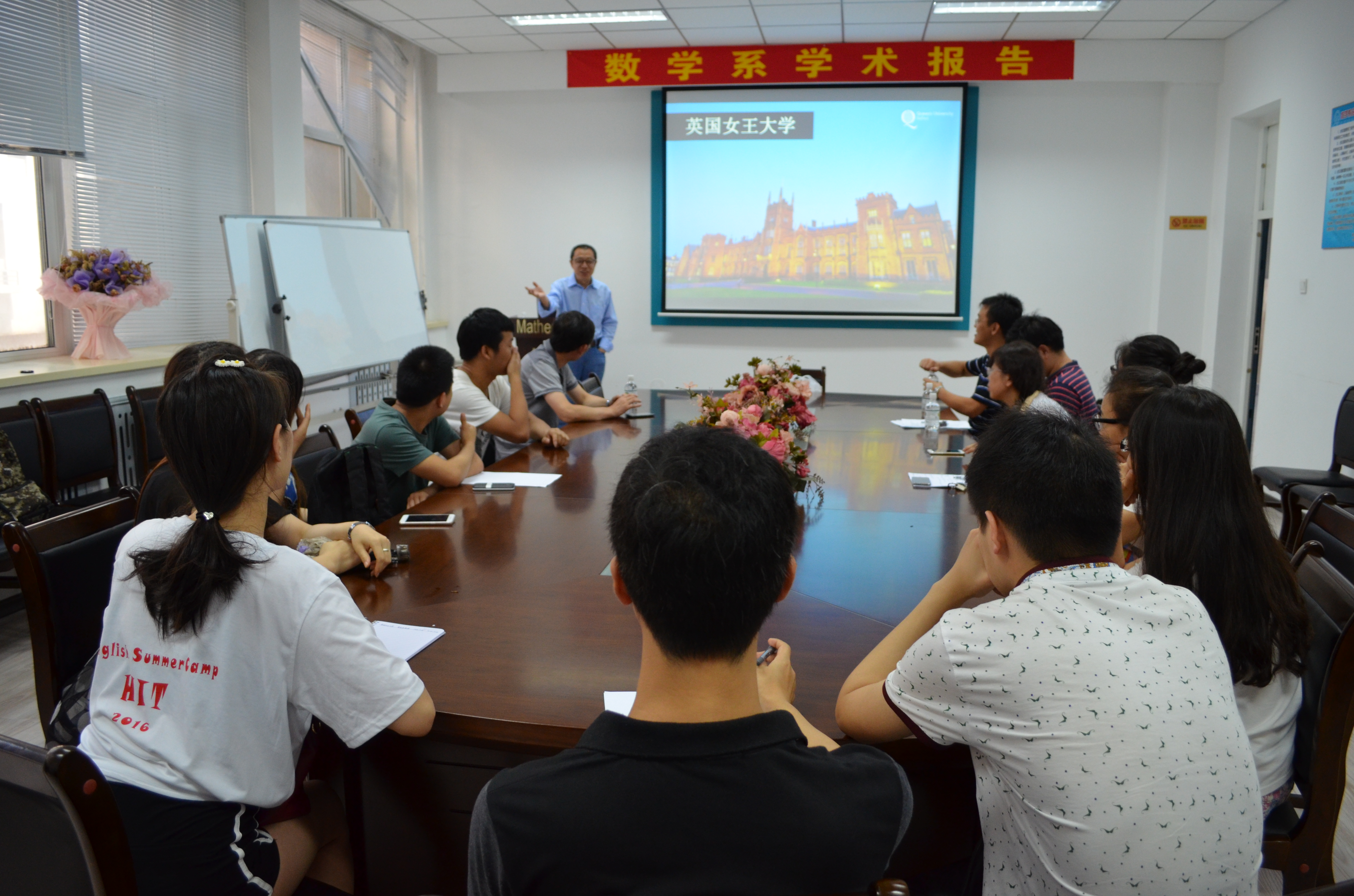 2016年7月19日上午10:00-11:00,英国贝尔法斯特女王大学(Queen's University Belfast)李有伟教授在数学系会议室(格物楼503)做了题为《Can Investor Sentiment Be A Momentum Time-Series Predictor?Evidence from China》的学术报告,报告由王春程老师主持,数学系十余位师生听取了报告,并进行了热烈的讨论。