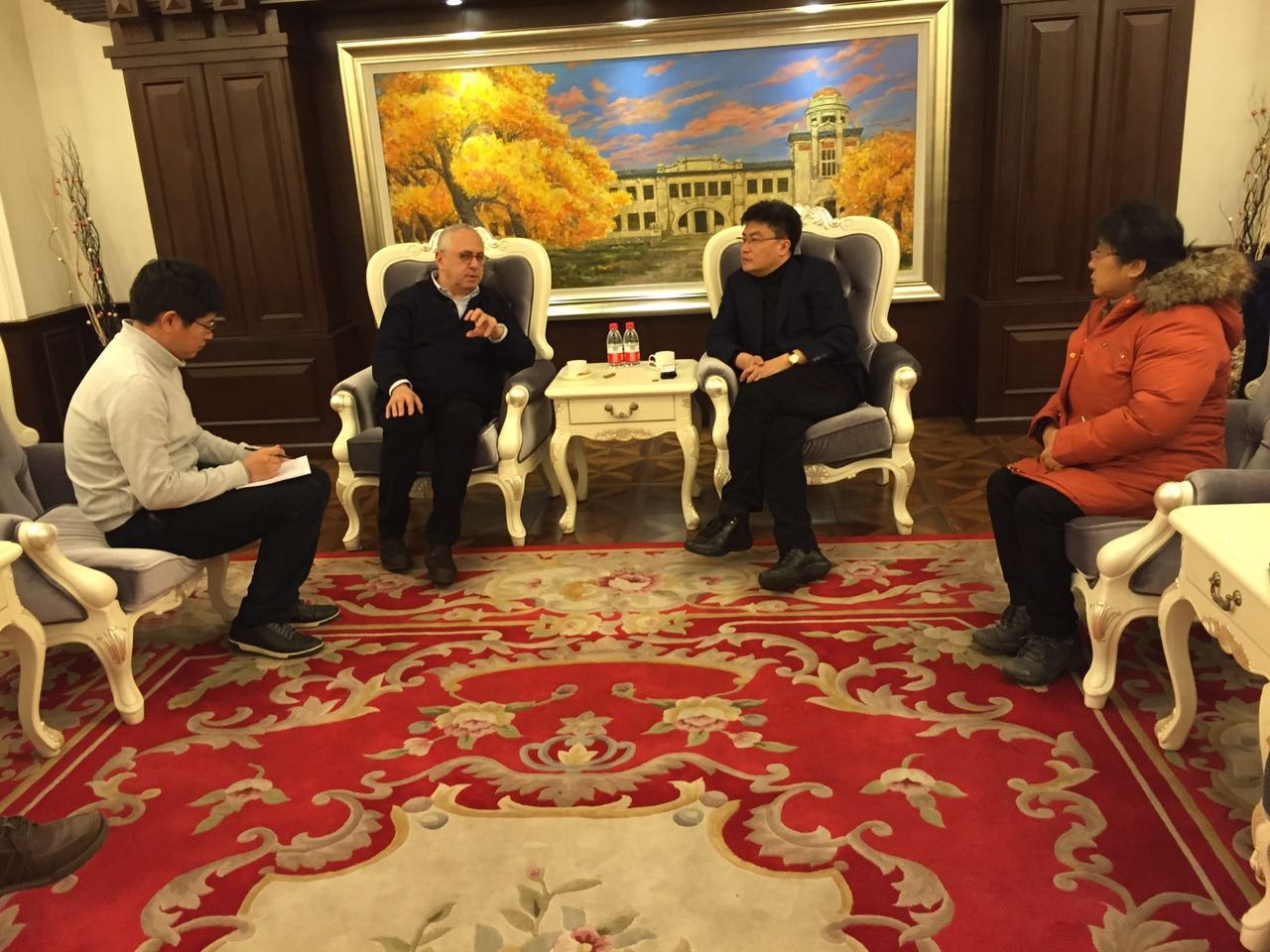 安实副校长会见巴黎文理大学Henri Berestycki院士 1月5日行政楼101,安实副校长亲切会见了我校荣誉教授、巴黎文理大学科研副校长Henri Berestycki院士。安实首先代表哈工大欢迎Henri Berestycki的来访,介绍了我校大力发展数学学科的战略。Henri Berestycki表示 “作为一名数学家和巴黎文理大学的科研负责人,我高度赞赏哈工大的这一发展战略”。双方就哈工大数学学科的人才培养达成了一系列共识,期望在已有的合作基础之上,进一步深化人才交流、培养、引进等方面的合作。参加会见的包括数学系系主任吴勃英教授,威海校区理学院院长魏俊杰教授,数学系青年教师方健等。