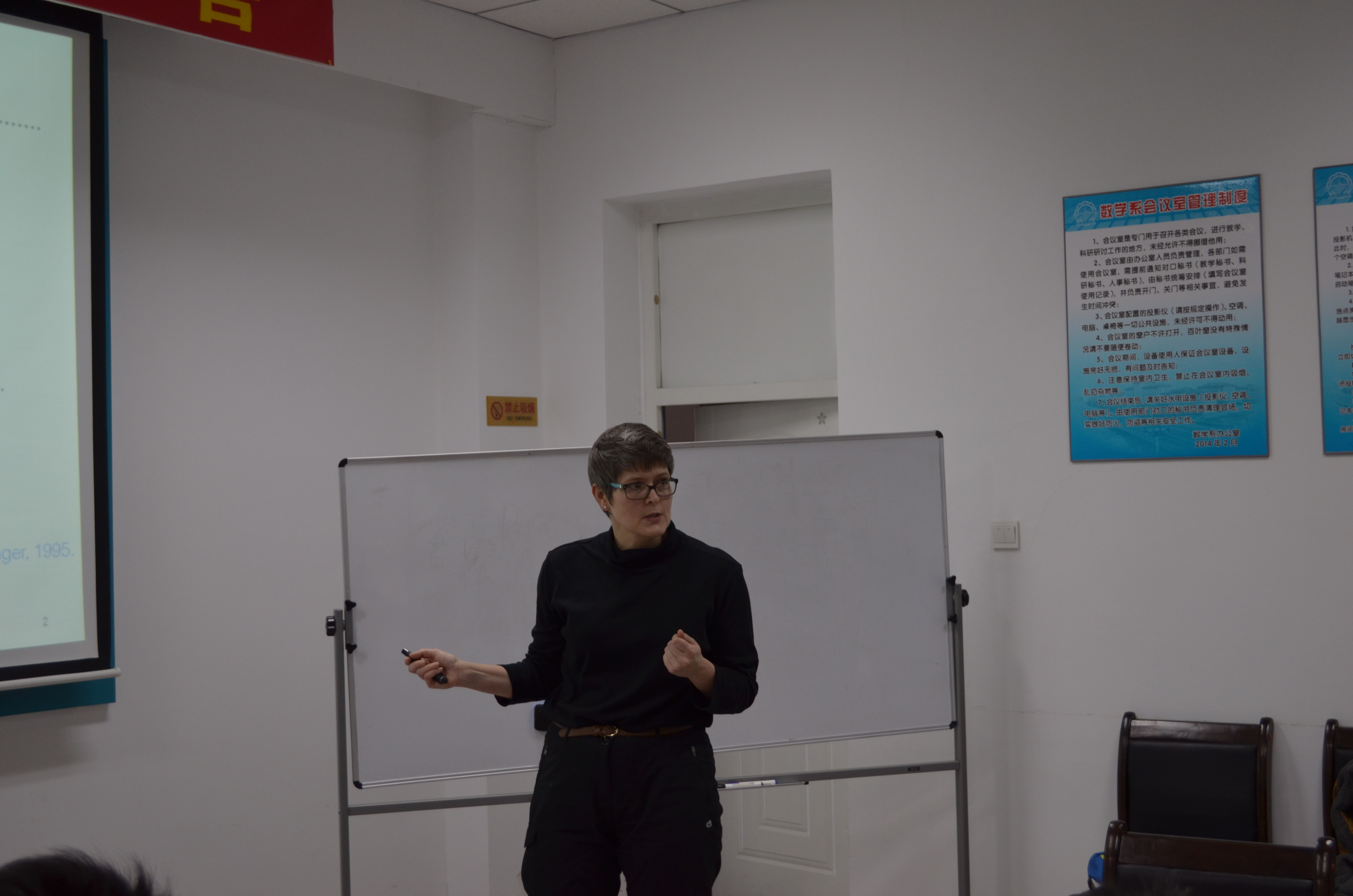 2017年1月15日上午10:00-12:00,英国东安格利亚大学Jennifer Ryan副教授在格物楼503会议室做了题目为“The many aspects of superconvergence in discontinuous Galerkin schemes”的学术报告,报告由孟雄副教授主持,数学系近20位师生听取了报告并进行了热烈的讨论。报告主要介绍了间断有限元方法的超收敛理论,包括超收敛的概念、超收敛分析的常用研究方法以及不同超收敛性质之间的内在联系等。