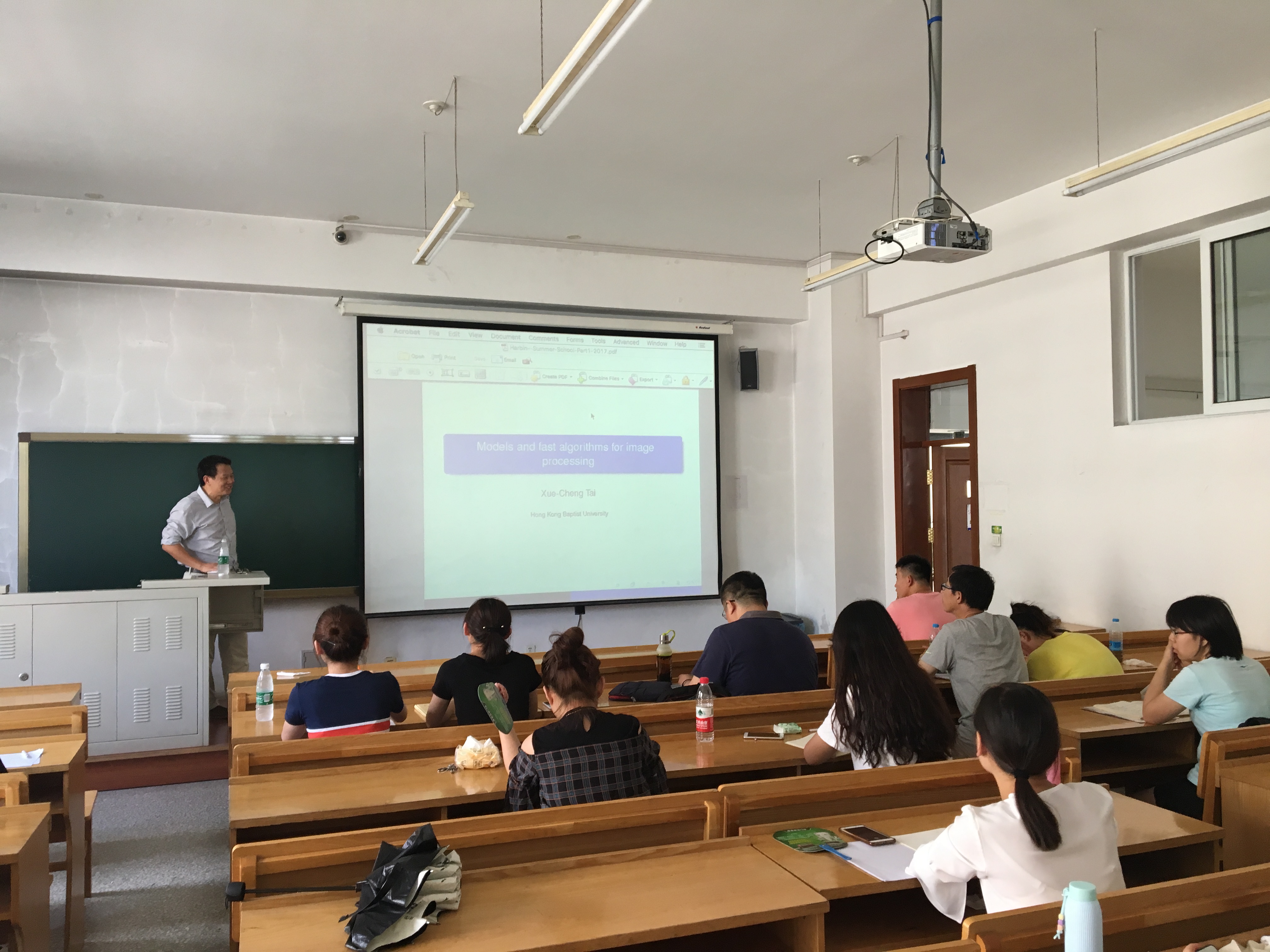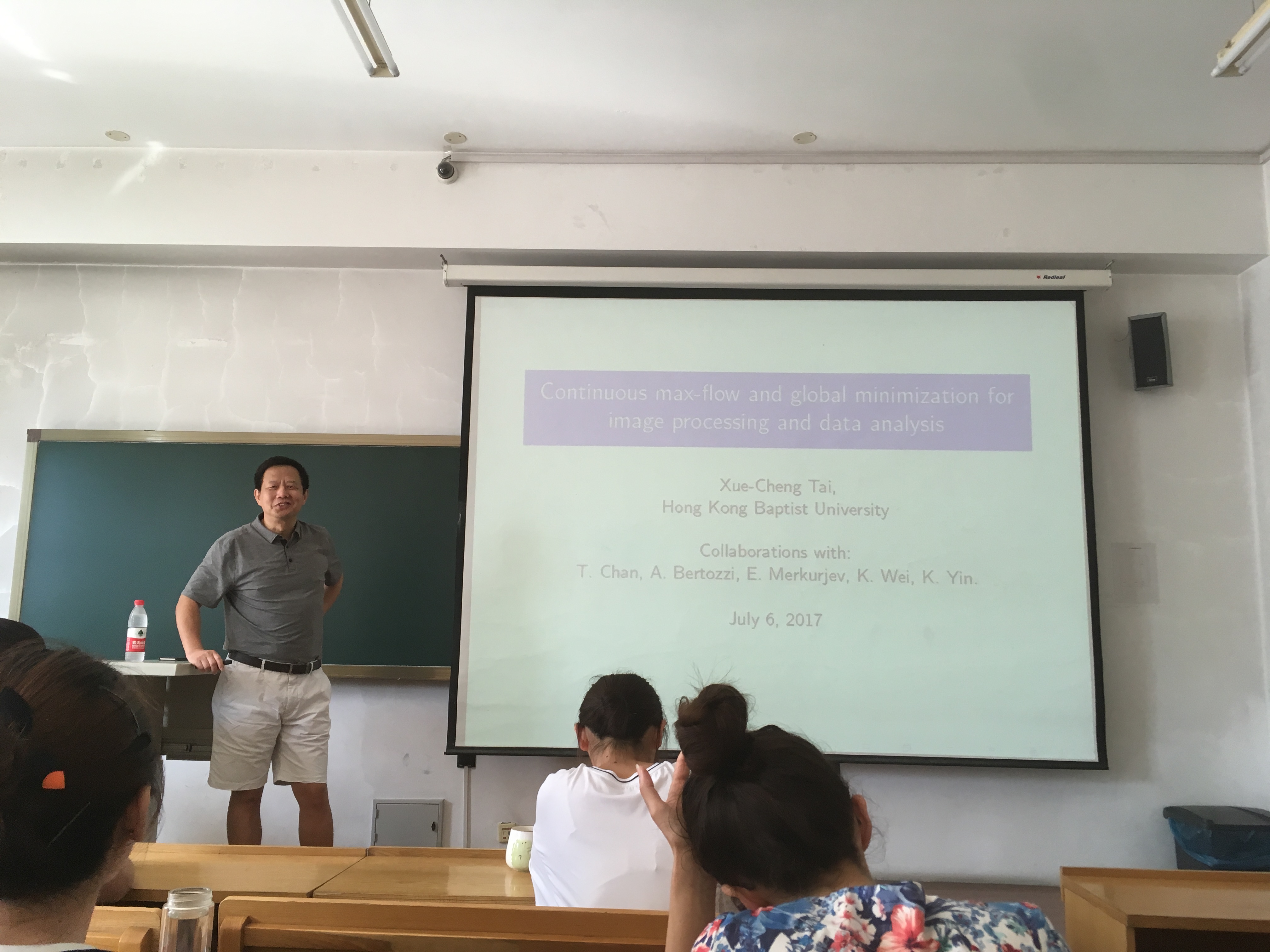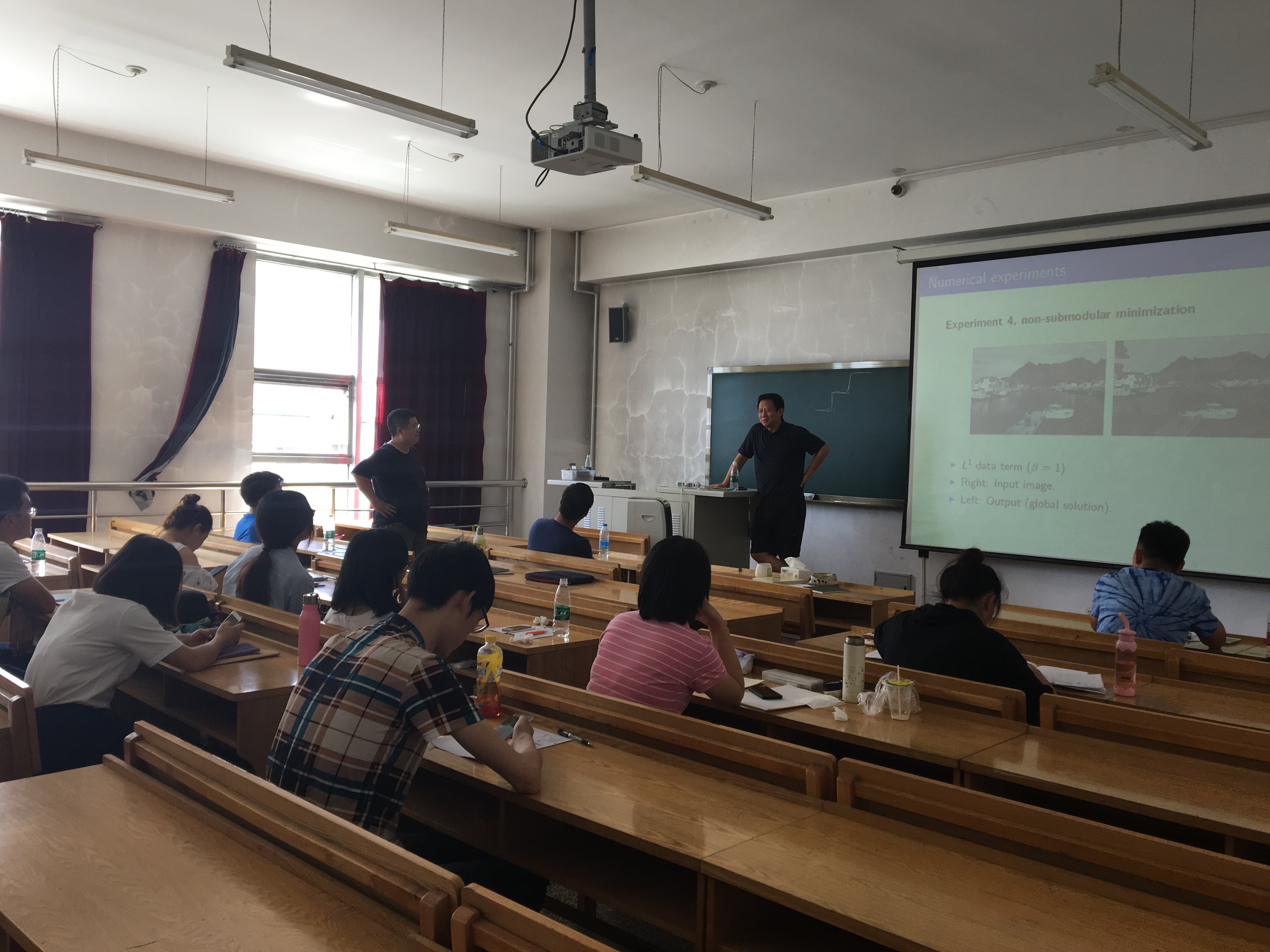 应taptap点点官方网站数学系的邀请,图像处理领域国际著名学者台雪成教授于2017年7月12-19日访问我校并作图像处理系列报告。来自校内外的学者和师生共50余人参加了此次学术报告和讨论。 此次系列学术报告以“Variational Models and Fast Numerical Schemes in Image Processing and Computer Vision”为主题,着重讨论了图像分割领域中的变分模型和相应的快速算法。台雪成教授从4个方面为与会师生介绍了图像处理领域中的众多问题和解决方法。 第一次报告主要介绍图像处理领域中的基本概念,包括图像恢复、图像分割等内容的定义以及目前面临的核心问题;第二次报告介绍了图像处理领域中的数学基础内容,例如偏微分方程、变分原理、有界变差等内容; 第三次报告回顾了图像处理领域中的经典问题和经典模型,例如用于图像恢复的ROF模型、MS模型、Euler’s Elastica模型等等;第四次报告主要围绕高阶偏微分方程以及其他基于几何性质的图像处理模型; 第五次报告讨论了图像处理的数值模型和方法,从最简单的梯度下降方法开始,台教授一步一步为在座师生介绍了算子分裂方法、AOS格式、对偶算法等传统数值算法;第六次报告则围绕目前较为主流的算法,例如分裂Bregman迭代、增广拉格朗日乘子法等算法进行讨论; 第七次报告台教授主要讲解了目前图像分割领域的新算法,例如分片常数水平集方法、图割方法等;第八次报告台教授介绍了他正在研究的图像分割领域中的前沿问题和方法,以及未来的工作。 每次报告之后,台教授都主持了报告相关问题的学术讨论,回答在座师生的各种问题。与此同时,台教授还主持了2次图像处理相关领域的学术讨论,分别为“高阶变分偏微分方程图像去噪方法”和“图像分割水平集方法”。参加学术报告的师生发言踊跃,交流思想,分享心得,进一步加深了对于图像处理中的数学理论与方法,以及在医学、交通、海洋探测等领域的应用前沿研究状况和最新研究成果的了解。 台教授风趣幽默的性格、深入浅出的课程和严谨认真的研究态度深深的感染了在座听众,使大家获益匪浅,有几位本科生在课后主动联系台教授,有意跟随他攻读博士并在图像处理领域作进一步的研究。同时,在场师生的热情也打动了台教授,他表示将和哈工大数学系建立长期的交流合作。 本次系列报告充分反映了图像分割领域中的数学理论与方法这一主题,以及最新发展和动态,对于进一步促进taptap点点官方网站与国内外同行之间的交流与合作起到了积极的作用。 此次活动是数学系SCI期刊编委校园行的一部分。
