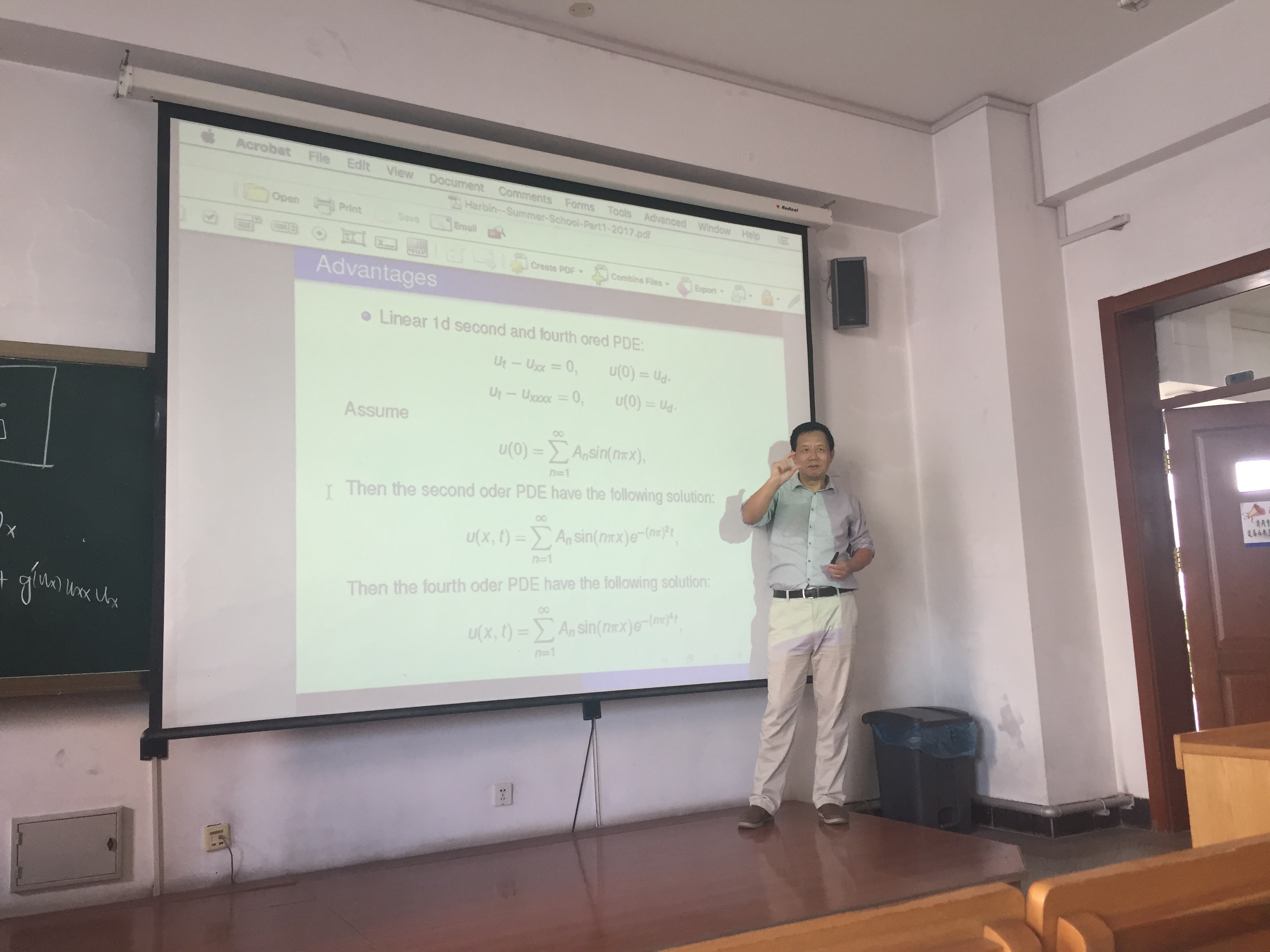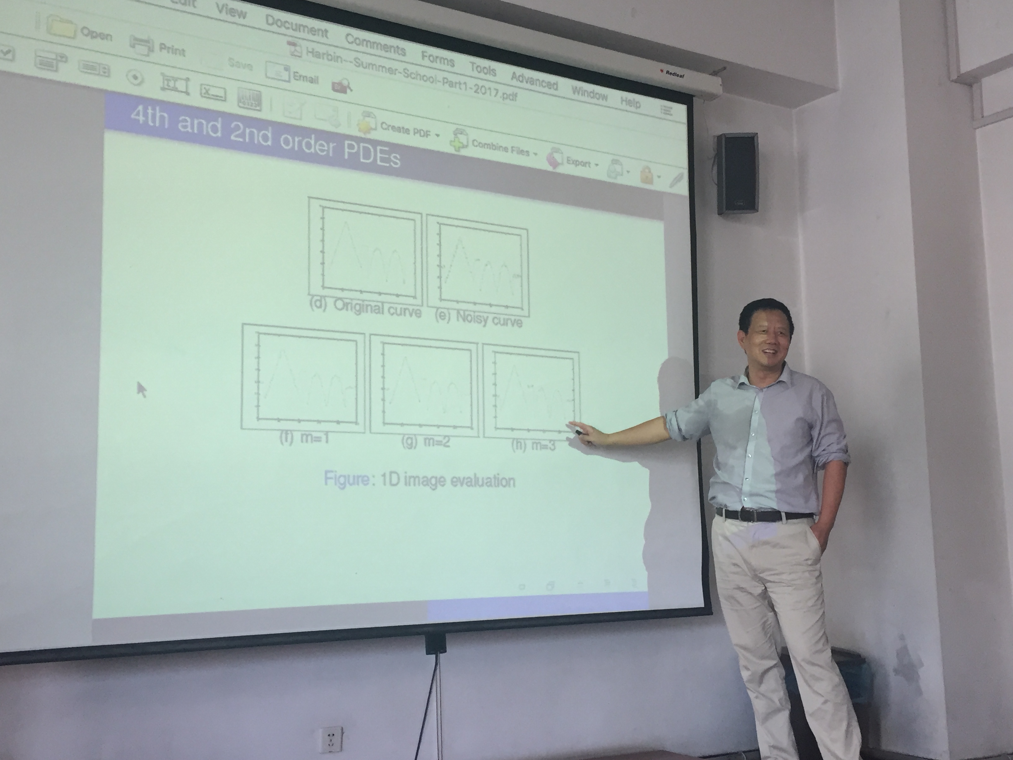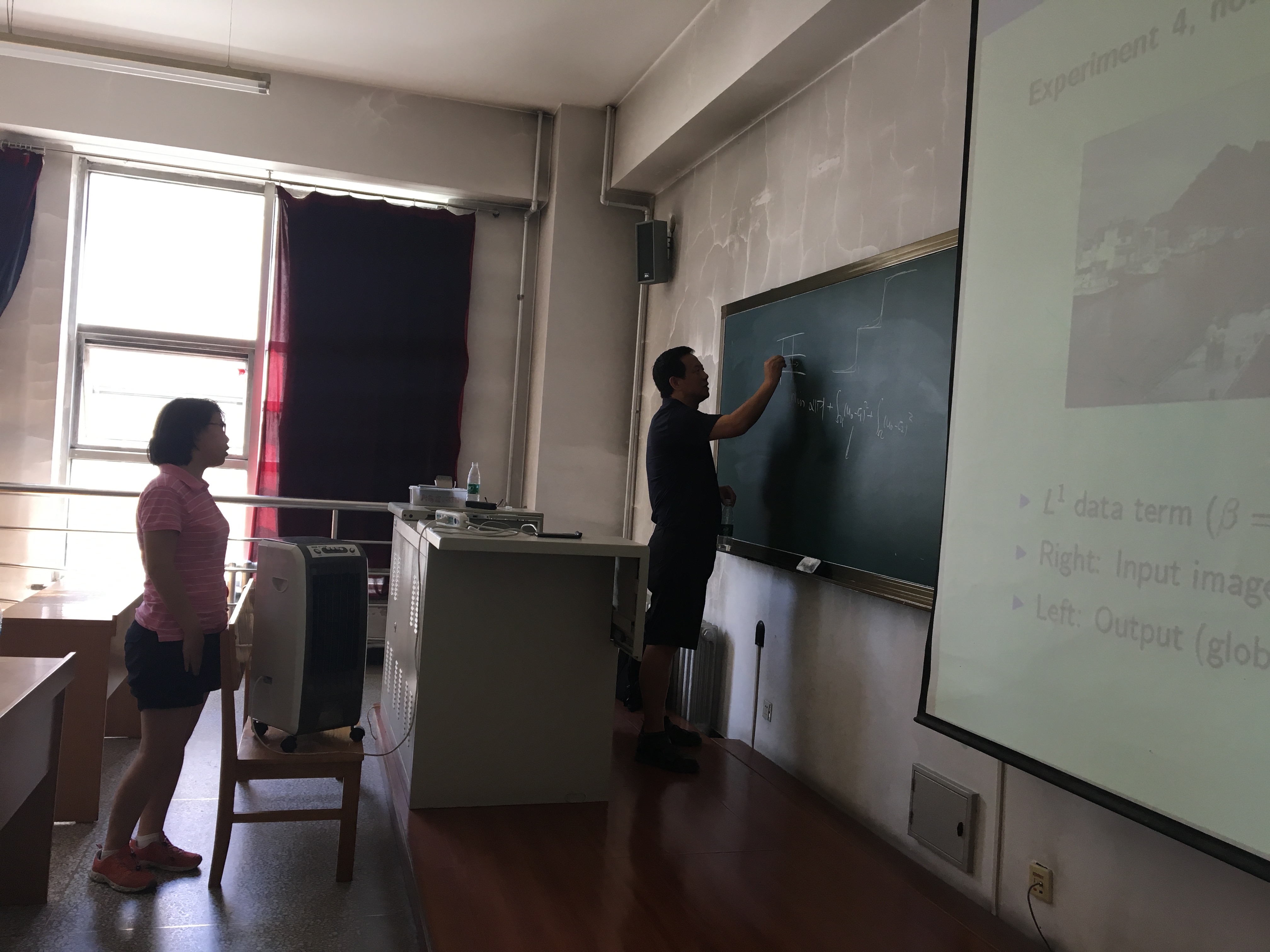 应taptap点点官方网站数学系的邀请,图像处理领域国际著名学者台雪成教授于2017年7月12-19日访问我校并作图像处理系列报告。来自校内外的学者和师生共50余人参加了此次学术报告和讨论。 此次系列学术报告以“Variational Models and Fast Numerical Schemes in Image Processing and Computer Vision”为主题,着重讨论了图像分割领域中的变分模型和相应的快速算法。台雪成教授从4个方面为与会师生介绍了图像处理领域中的众多问题和解决方法。 第一次报告主要介绍图像处理领域中的基本概念,包括图像恢复、图像分割等内容的定义以及目前面临的核心问题;第二次报告介绍了图像处理领域中的数学基础内容,例如偏微分方程、变分原理、有界变差等内容; 第三次报告回顾了图像处理领域中的经典问题和经典模型,例如用于图像恢复的ROF模型、MS模型、Euler’s Elastica模型等等;第四次报告主要围绕高阶偏微分方程以及其他基于几何性质的图像处理模型; 第五次报告讨论了图像处理的数值模型和方法,从最简单的梯度下降方法开始,台教授一步一步为在座师生介绍了算子分裂方法、AOS格式、对偶算法等传统数值算法;第六次报告则围绕目前较为主流的算法,例如分裂Bregman迭代、增广拉格朗日乘子法等算法进行讨论; 第七次报告台教授主要讲解了目前图像分割领域的新算法,例如分片常数水平集方法、图割方法等;第八次报告台教授介绍了他正在研究的图像分割领域中的前沿问题和方法,以及未来的工作。 每次报告之后,台教授都主持了报告相关问题的学术讨论,回答在座师生的各种问题。与此同时,台教授还主持了2次图像处理相关领域的学术讨论,分别为“高阶变分偏微分方程图像去噪方法”和“图像分割水平集方法”。参加学术报告的师生发言踊跃,交流思想,分享心得,进一步加深了对于图像处理中的数学理论与方法,以及在医学、交通、海洋探测等领域的应用前沿研究状况和最新研究成果的了解。 台教授风趣幽默的性格、深入浅出的课程和严谨认真的研究态度深深的感染了在座听众,使大家获益匪浅,有几位本科生在课后主动联系台教授,有意跟随他攻读博士并在图像处理领域作进一步的研究。同时,在场师生的热情也打动了台教授,他表示将和哈工大数学系建立长期的交流合作。 本次系列报告充分反映了图像分割领域中的数学理论与方法这一主题,以及最新发展和动态,对于进一步促进taptap点点官方网站与国内外同行之间的交流与合作起到了积极的作用。 此次活动是数学系SCI期刊编委校园行的一部分。