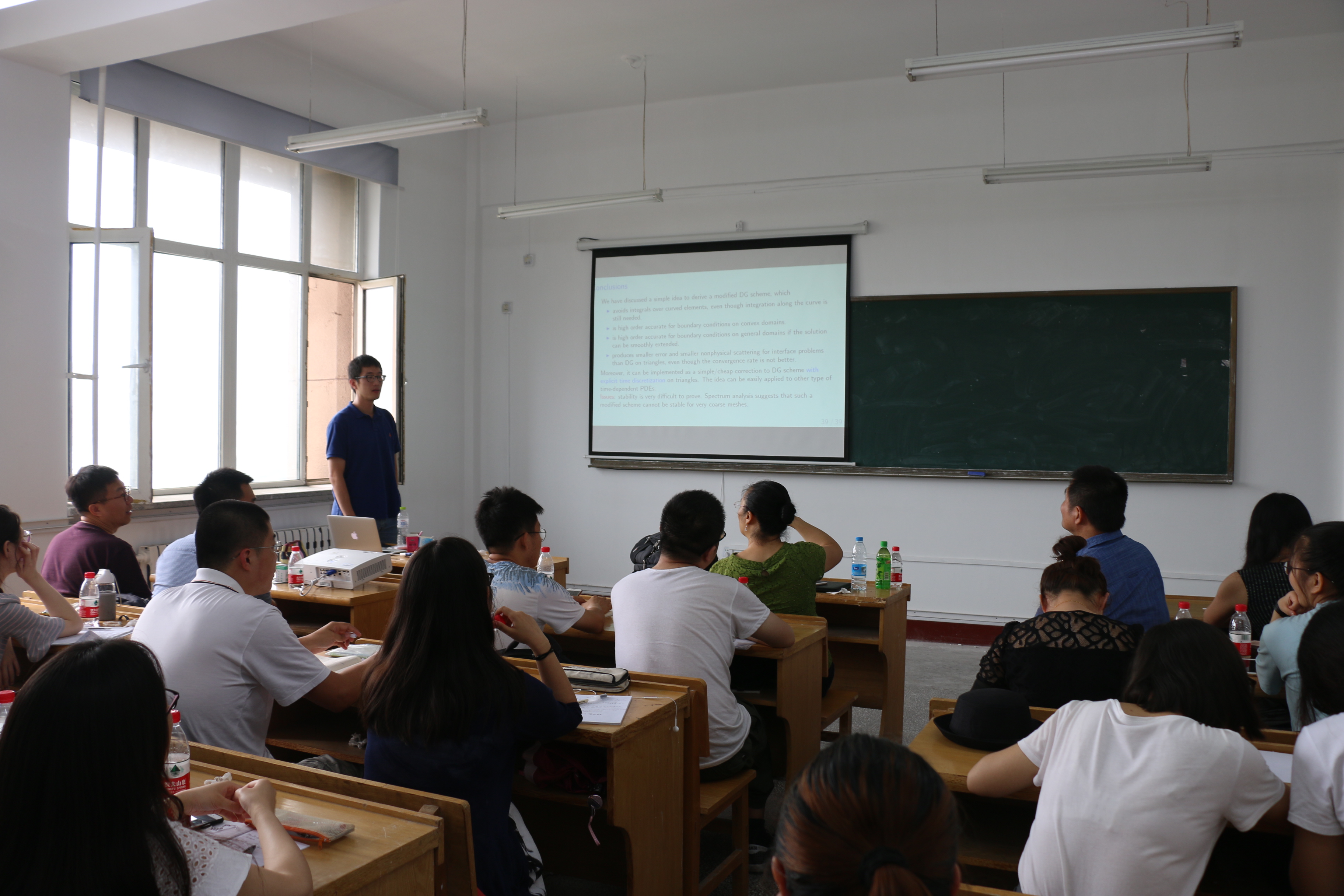 受国际合作处资助,应数学系吴勃英教授和数学系与数学研究院孟雄副教授邀请,美国普渡大学张翔雄博士近日访问了我校,并于2017年7月17日上午10:00-11:00在格物楼522会议室作了题为“Positivity-Preserving High Order Discontinuous Galerkin Schemes for Compressible Navier-Stokes Equations”的学术报告,报告由孟雄副教授主持,数学系30余位师生听取了报告并进行了热烈的讨论。报告主要介绍了求解可压缩Navier-Stokes方程高阶间断有限元方法的保正格式的设计与分析。