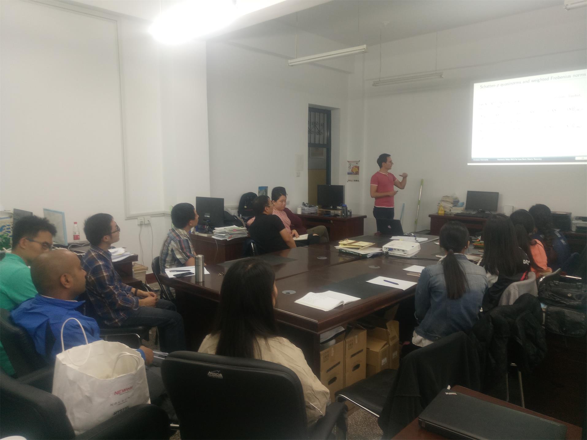 题目:Harmonic Mean Iteratively Reweighted Least Squares for Low-Rank Matrix Recovery 报告人:Christian Kümmerle 时间:2017年9月5日星期二,晚上18:00到20:00 地点:格物楼518 摘要:We propose a new iteratively reweighted least squares (IRLS) algorithm for the recovery of a matrix X in dimension (d_1 x d_2) of rank r from incomplete linear observations, solving a sequence of low complexity linear problems. The easily implementable algorithm, which we call harmonic mean iteratively reweighted least squares (HM-IRLS), optimizes a non-convex Schatten-pp quasi-norm penalization to promote low-rankness and carries three major strengths, in particular for the matrix completion setting. First, the algorithm converges globally to the low-rank matrix for relevant, interesting cases, for which any other (non-)convex state-of-the-art optimization approach fails the recovery. Secondly, HM-IRLS exhibits an empirical recovery probability close to 1 even for a number of measurements very close to the theoretical lower bound r(d1+d2−r),i.e., already for significantly fewer linear observations than any other tractable approach in the literature. Thirdly, HM-IRLS exhibits a locally superlinear rate of convergence (of order 2−p) if the linear observations fulfill a suitable null space property. While for the first two properties we have so far only strong empirical evidence, we prove the third property as our main theoretical result.Joint work with Juliane Sigl (Technische Universität München, Germany). 个人简介:Christian Kümmerle是德国慕尼黑工业大学博士,曾在法国巴黎第六大学和美国弗吉尼亚大学交流。他的研究兴趣方向是统计、最优化、高维概率理论的交叉研究和它们在数据相关问题中的应用。