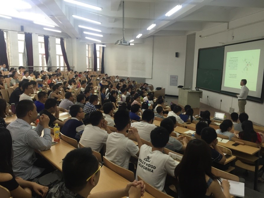 2017年哈工大国际数学暑期学校 本次暑期学校邀请了全球顶尖应用数学专家授课,包括:机器学习开山鼻祖、加州大学伯克利分校Michael Jordan院士,人工智能创始人之一、瑞士人工智能实验室主任Jurgen Schmidhuber院士,统计学“诺贝尔”—考普斯总统奖获得者、宾夕法尼亚大学沃顿商学院蔡天文教授,变分数据同化创始人、法国格勒诺布尔大学Francois Le Dimet教授,地球物理顶级期刊Geophysics主编、加拿大阿尔伯克大学物理系主任Mauricio Sacchi教授。在7月23日暑期学校开幕式上,副校长徐殿国教授、授课专家Michael Jordan教授和Francois Le Dimet教授为暑期学校开幕致辞。