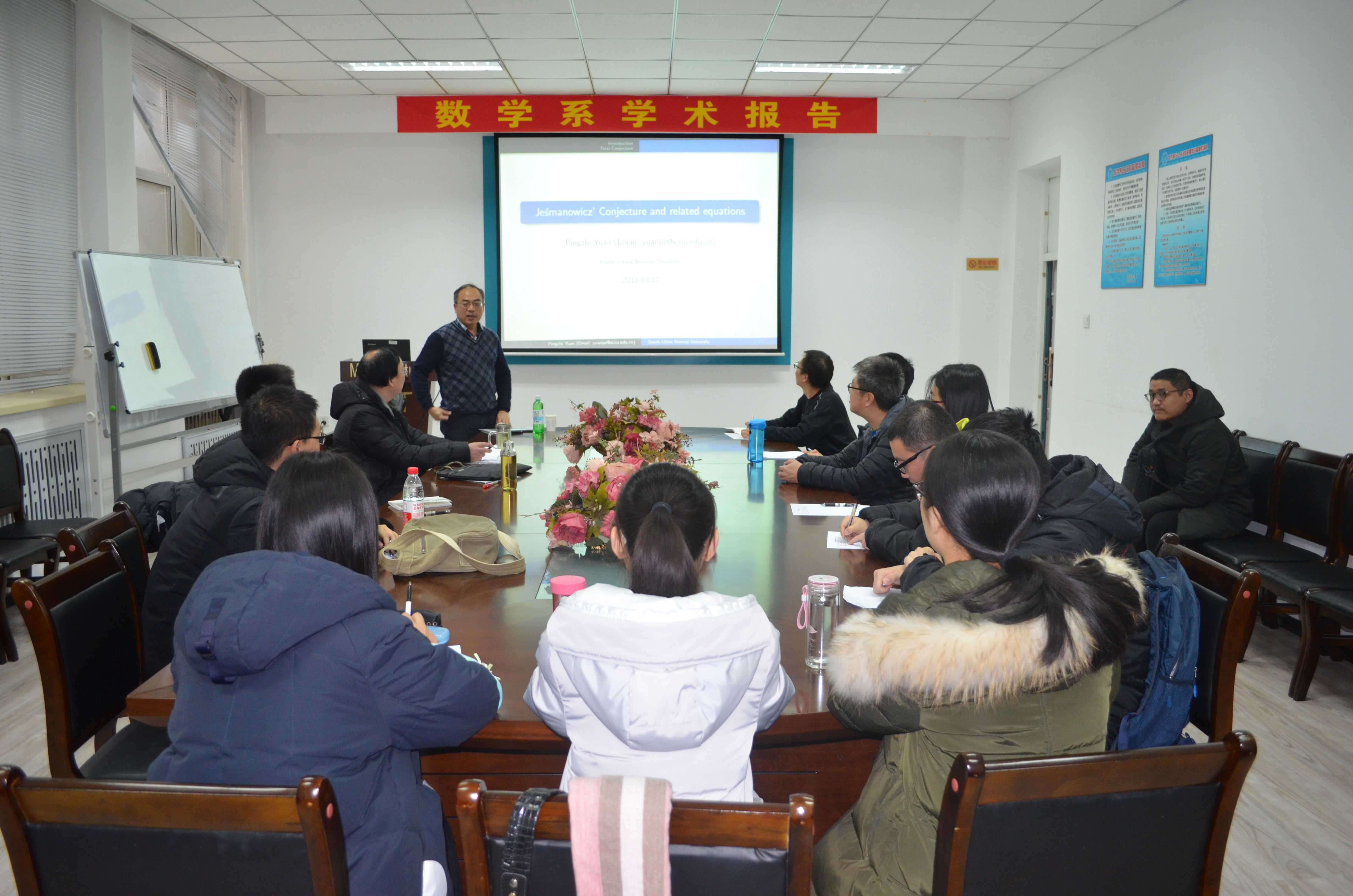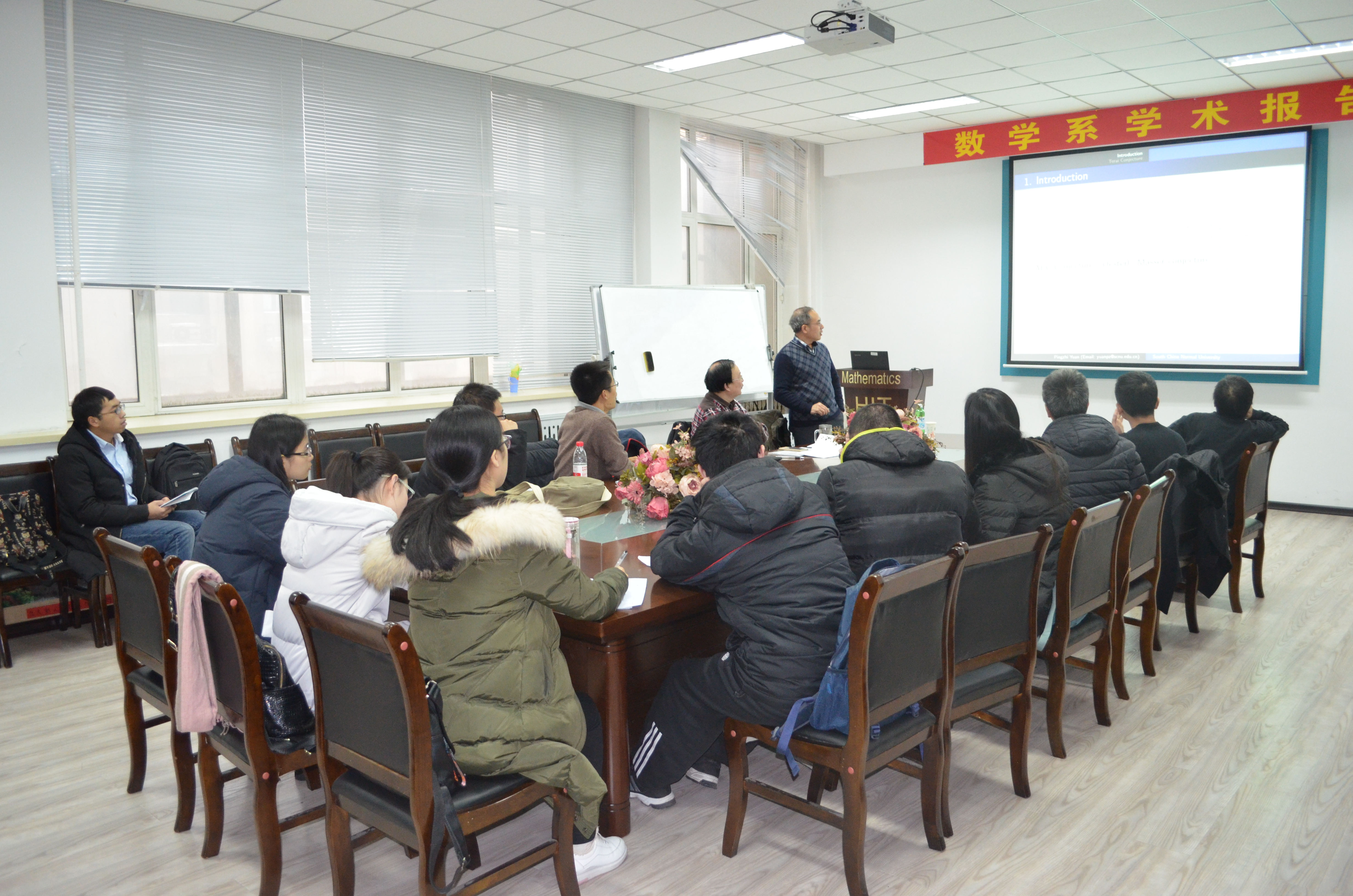 会议室做了精彩报告,报告由陈胜教授主持,来自哈工大数学系的