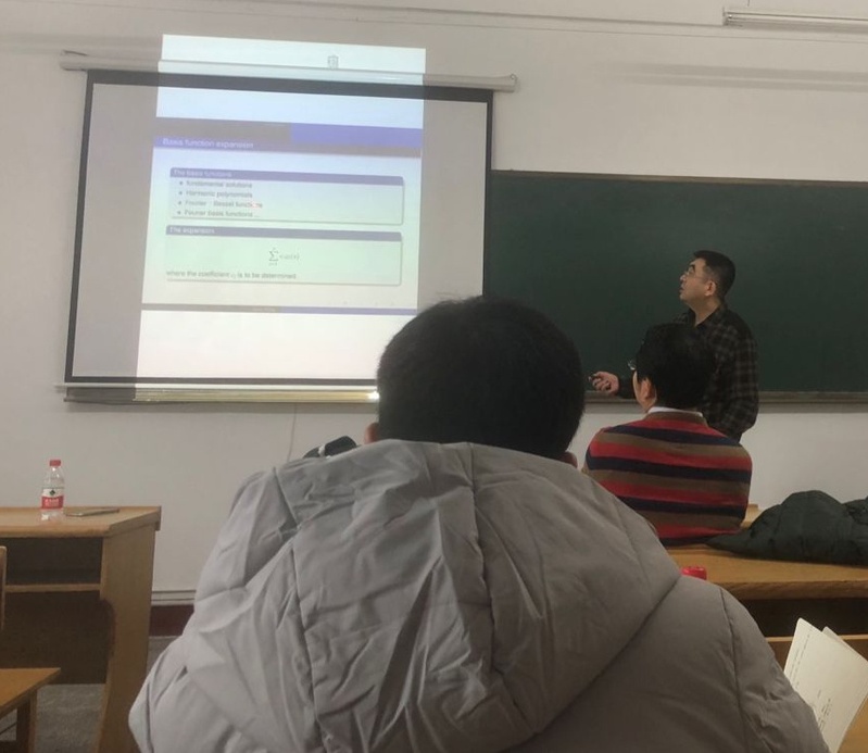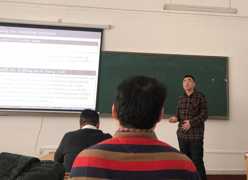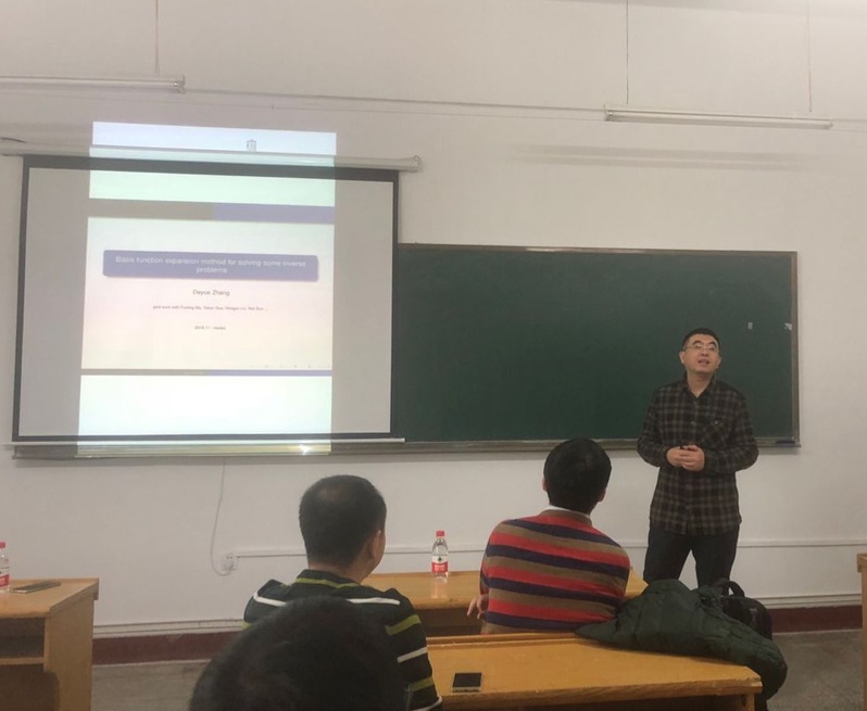 应数学系郭玉坤副教授的邀请,吉林大学taptap点点体育张德悦教授于2018年11月18日至20日到我校进行学术访问。张德悦教授分别于18日下午14:00-15:00和20日上午9:00-10:00在格物楼522报告厅做了两场学术讲座,报告内容涉及声波反散射问题、无相位数据问题的参考球技术、以及基函数展开法求解反问题的算法框架及其应用等课题。报告由郭玉坤副教授主持,数学系相关方向的师生参加了报告会并与张德悦教授进行了热烈的学术交流与讨论。