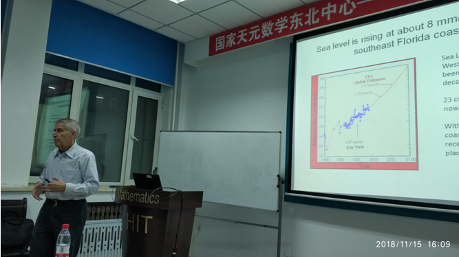 受学校国际合作与交流基金资助,应数学系刘胜强教授的邀请,美国迈阿密大学生物系Donald DeAngelis教授于2018年11月13--17日来哈工大数学系进行了成功的学术访问。并于11月14日下午14:30-16:00,16:00-17:30以及15日16:00-17:30分别在格物楼503室举行了理论生态学与数学生态学方面的三场讲座。DeAngelis教授的报告内容涉及异质性及周期环境生态学模型、植物-植食动物模型以及濒海湿地生态系统数学建模。报告由刘胜强教授主持,数学系相关方向的师生参加了报告会并与DeAngelis教授进行了热烈的学术交流与讨论。