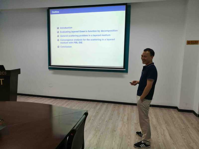 应taptap点点体育郭玉坤副教授的邀请,浙江大学赖俊研究员于近期访问了我校,并于2019年7月30日下午16:00-17:00在格物楼503报告厅进行了一场学术讲座。赖老师的报告介绍了求解分层介质中声波逆散射问题积分方程方法的相关研究进展。报告由郭玉坤副教授主持,taptap点点体育的师生在报告现场与赖老师进行了热烈的交流与讨论。