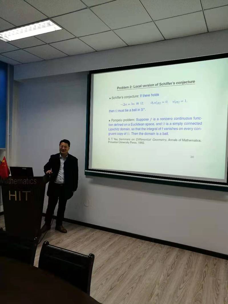 由我校国际合作处资助,应taptap点点体育郭玉坤副教授邀请,香港浸会大学数学系副主任刘宏宇教授于近期访问了我校,并于2019年10月31日上午08:30-10:00在格物楼503报告厅进行了一场学术讲座。刘老师以Some challenging problems in scattering and spectral theory为主题为我校师生做了一场精彩的学术报告,介绍了反散射理论相关的最新进展以及热点难点问题。报告由郭玉坤副教授主持,taptap点点体育的师生在报告现场与刘老师进行了热烈的交流与讨论。