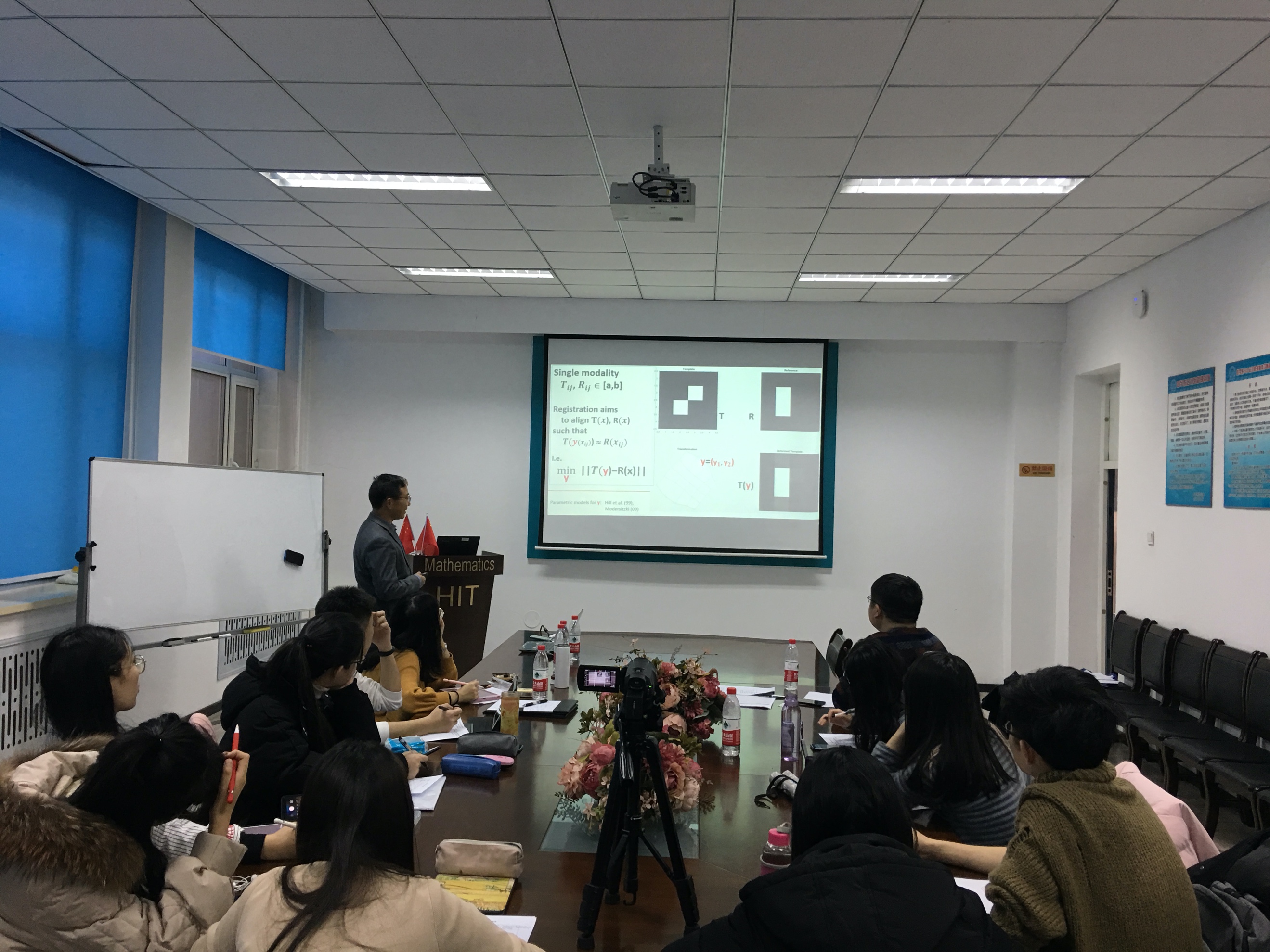 应taptap点点体育郭志昌副教授邀请,2020年1月6日(周一)14:00—15:30及2020年1月8日(周三)14:00—17:15,英国利物浦大学陈柯教授在格物楼503会议室分别做了题目为:On Optimization Models and Methods for Inverse Problems from Imaging、On A New Image Algorithm for Simultaneously Bias Correction and Co-Registration:Part I、On A New Image Algorithm for Simultaneously Bias Correction and Co-Registration:Part II的三个报告。报告介绍了图像配准及分割等问题的优化模型及算法,以及图像配准中的偏差纠正预处理技巧。陈柯教授是英国IMA Fellow、御批数学家,主要研究应用数学相关问题的新颖计算模型以及相关算法的开发和分析,已经在SIAM J. Sci. Comput.、IEEE Transactions on Image Processing、SIAM J. Numer. Anal.等国际顶级杂志上发表论文170余篇。数学系郭志昌副教授主持了报告,相关研究方向的20余位师生参会。陈柯教授的报告内容生动详实,深入浅出,报告结束后,大家还进行的热烈的讨论,整个报告内容博得了师生们的一致好评。