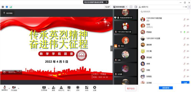 为深入学习贯彻习近平总书记关于烈士褒扬工作重要指示批示精神,团结团员青年崇尚英雄、捍卫英雄、学习英雄、关爱英雄,传承弘扬英烈事迹精神,引导团干部发挥模范带头作用,taptap点点体育团委于45700于线上召开“传承英烈精神,奋进伟大征程”英烈祭扫活动。taptap点点体育团委书记祁玥、团委副书记李佳彧、学生会、研究生会学生骨干和团委全体干事出席,活动由团委组织部干事符嘉益主持。