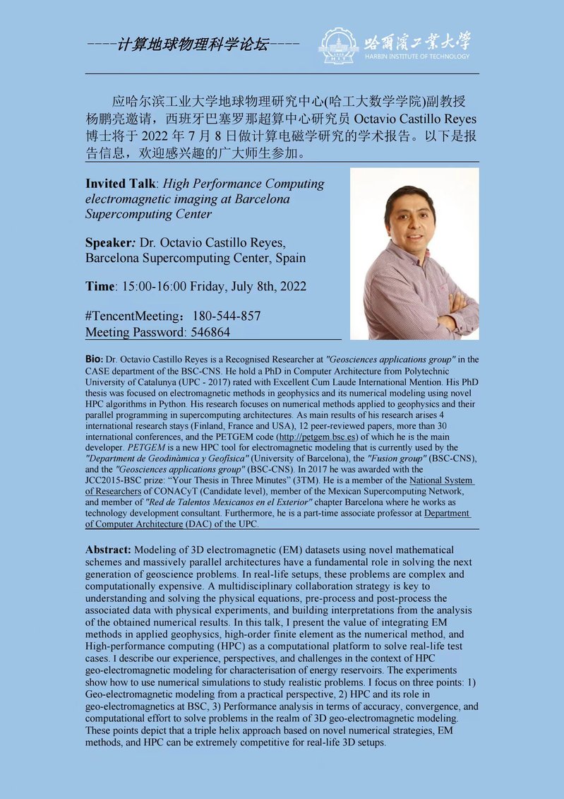 西班牙巴塞罗那超算中心研究员Octavio Castillo Reyes博士报告通知