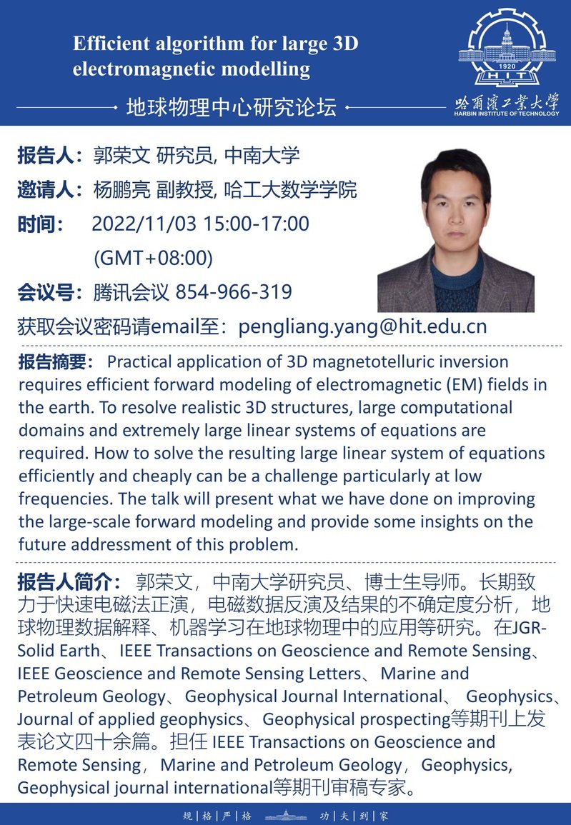 中南大学郭荣文研究员关于高效电磁模拟的学术报告通知