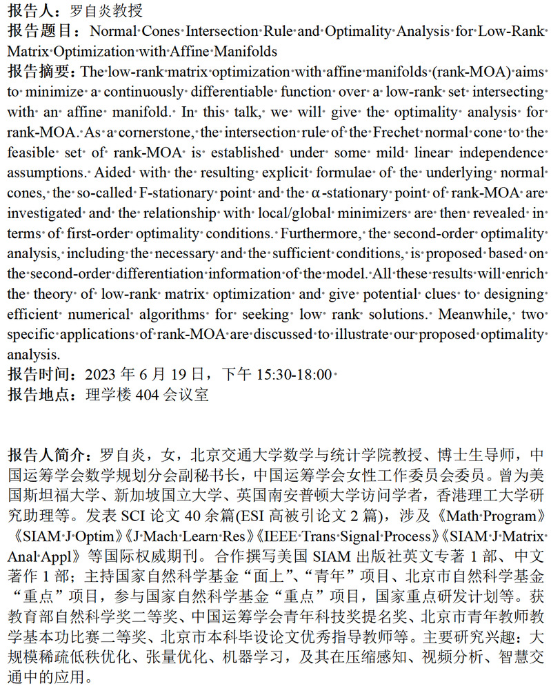 北京交通大学罗自炎教授学术报告通知