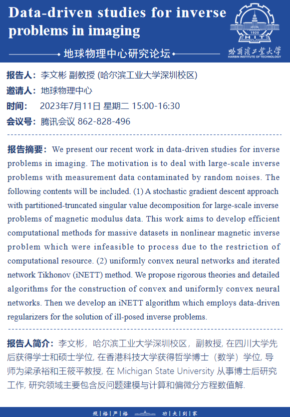 哈工大深圳校区李文彬副教授学术报告通知