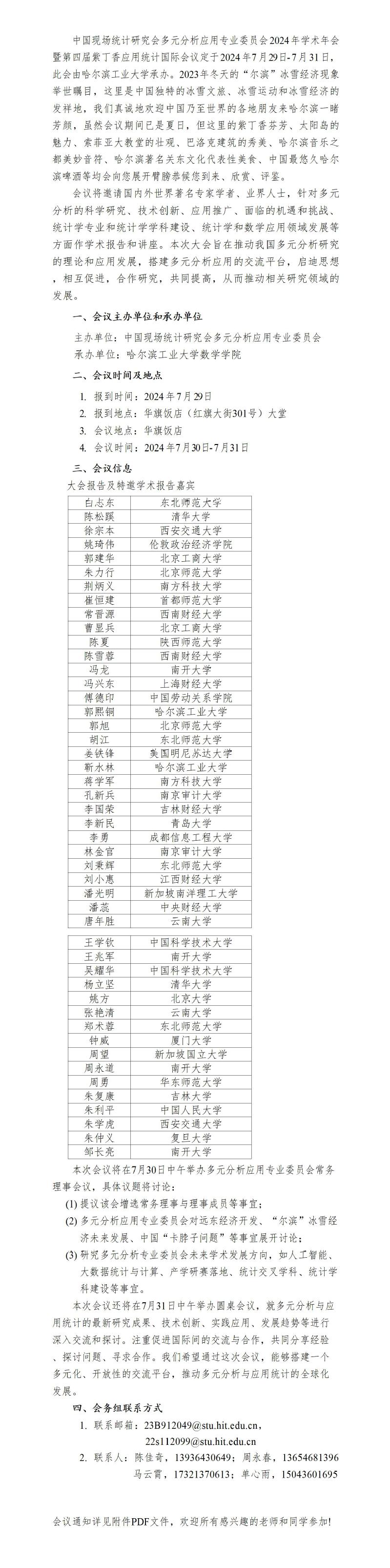 《2024年学术年会暨第四届紫丁香应用统计国际会议》会议通知