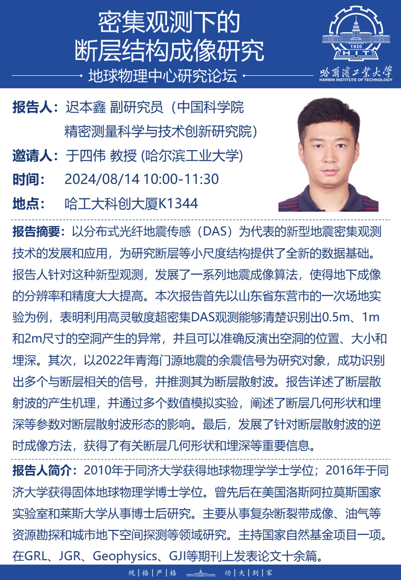 中国科学院迟本鑫副研究员讲座通知